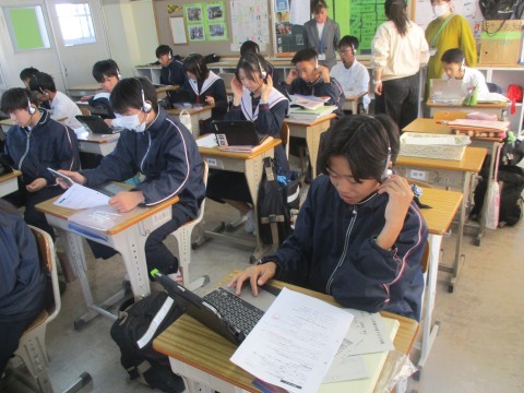 11日(火)、2年生5組の2時間目は、英語の授業でした。