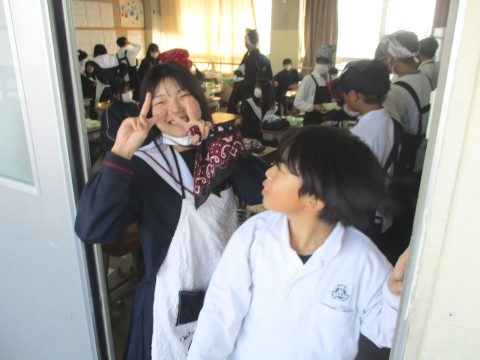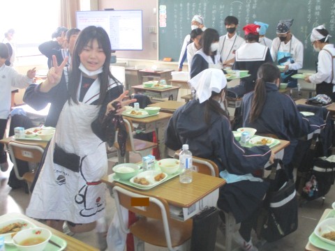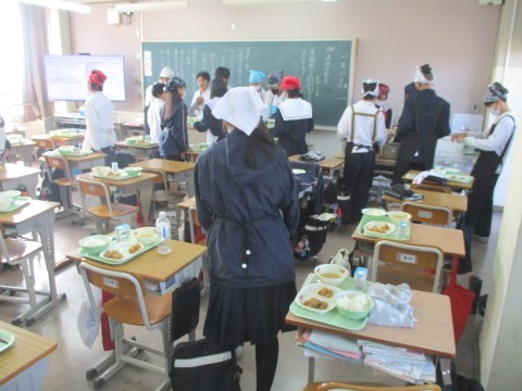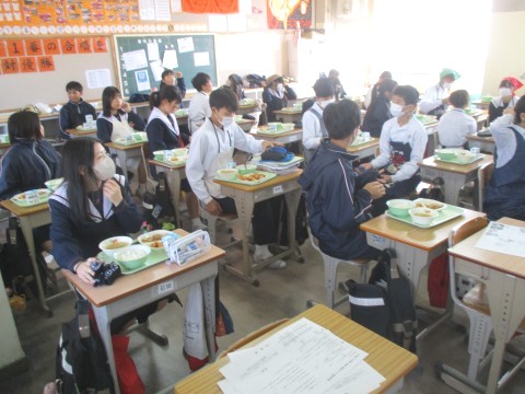 2年生2組:配膳の様子 ~生徒の心づかいに先生も感激~