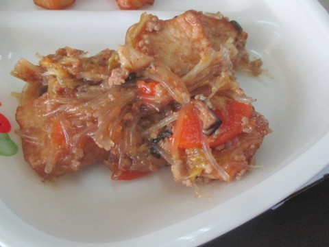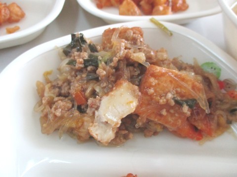 主菜は、中華の旅を体験できるような一品でした。「ピリッと厚揚げ」は、豚ひき肉のうま味と厚揚げの満足感に、彩り豊かなにんじんとにらが食欲をそそる一品でした。