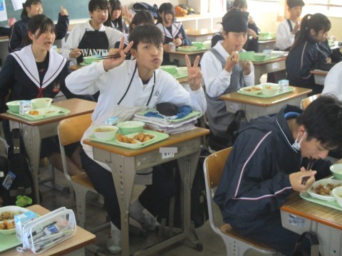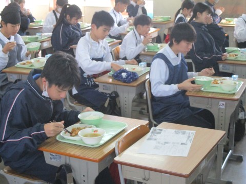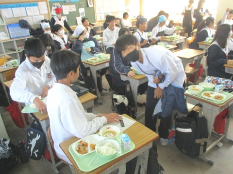 2年生3組:喫食の様子 ~ 「鶏すき煮」丼🍚 ~