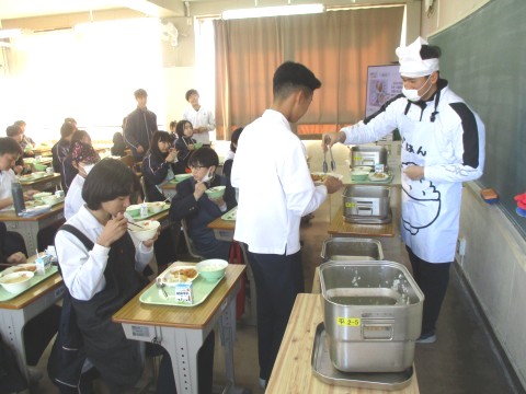 16日(金)2年生3組の喫食の様子 ~すきやき牛丼~