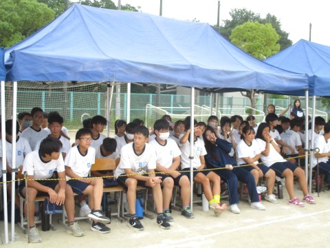 17日(水)、3年生は、5時間目にグラウンドで体育大会に向けて学年種目:学級対抗全員リレーのプレマッチを行いました。