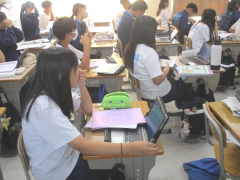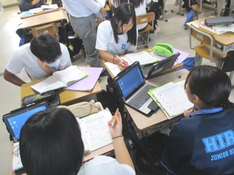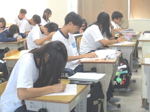 生徒たちは、落ち着いた様子で課題に取り組んでいました。