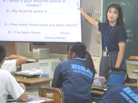 2日(木)、2年生4組の3時間目は、担任の先生による英語の授業でした。