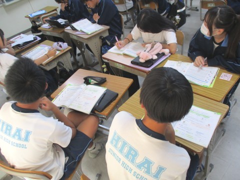 1日(水)、3年生2組の2時間目は、英語の授業でした。