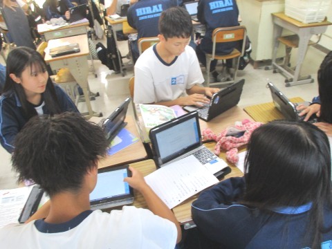 生徒は、あるテーマにそって書いた英文をAIに添削してもらう課題に取り組んでいました。