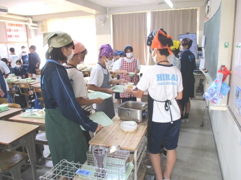 3年生1組の配膳の様子 ~ガーリック・フレイバー~