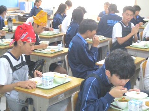 3年生5組の喫食の様子 ~香味野菜の役割~