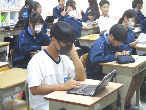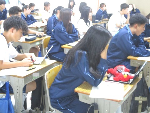 授業の後半では、AIを活用した英作文を書く活動が行われていました。