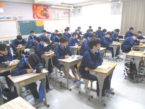 21日(火)オープンスクール1日目、3年生5組の2時間目は、数学の授業でした。