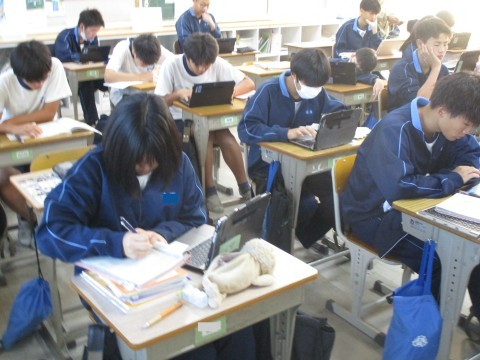 21日(火)オープンスクール1日目、3年生6組の3時間目は、社会の授業でした。