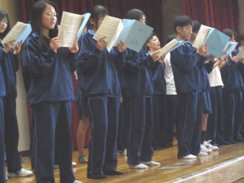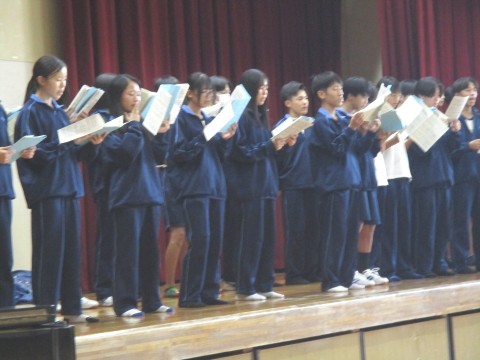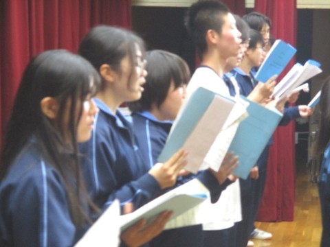 23日(木)、6時間目は、来月12日(水)に開催される「学年コーラスコンクール」に向けた合唱練習の時間でした。