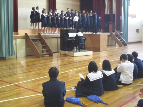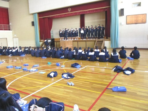 各クラスが、当日の発表順で、合唱曲を他のクラスの生徒が見守る中で披露しました。