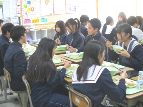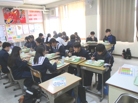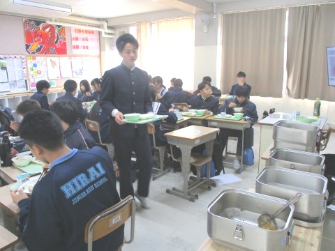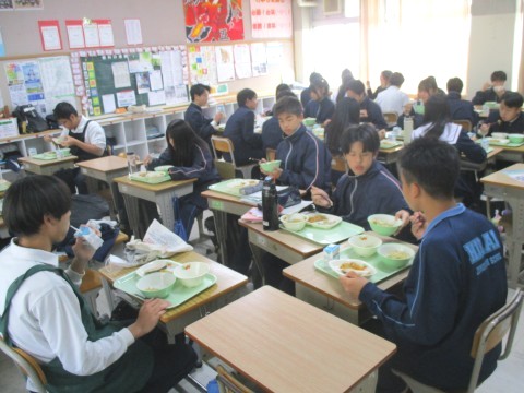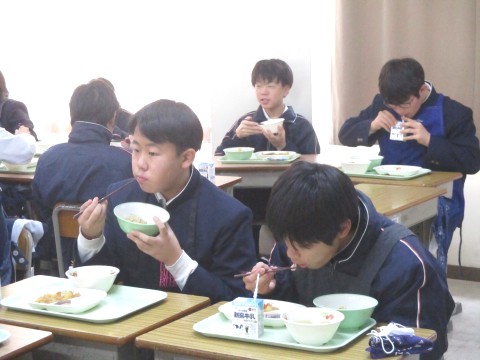 3年生にとって、今週は、20日(木)まで午前中授業(※午後は進路懇談を実施)のため、1週間ぶりの給食実施日でした。
