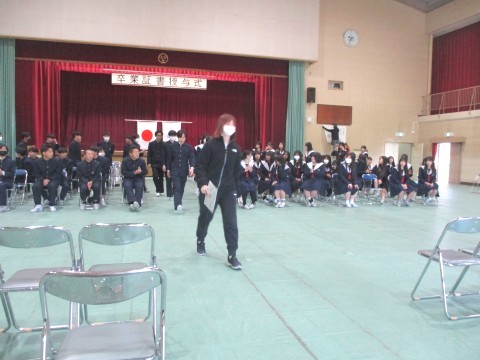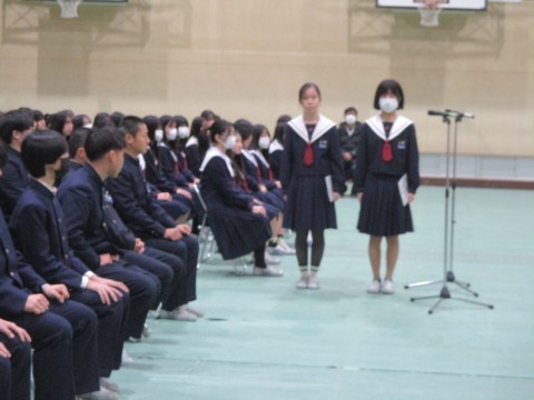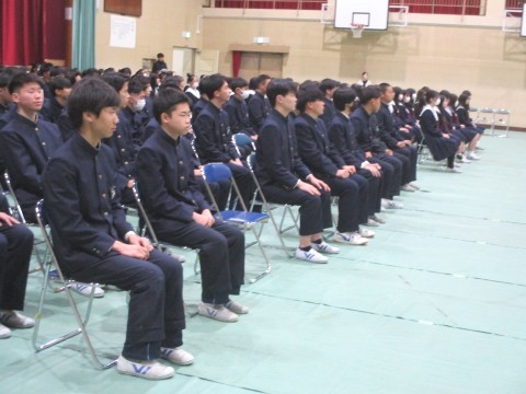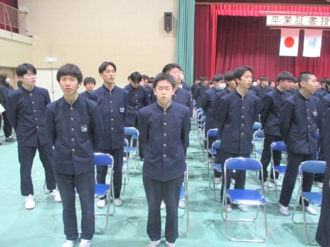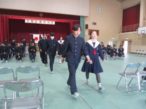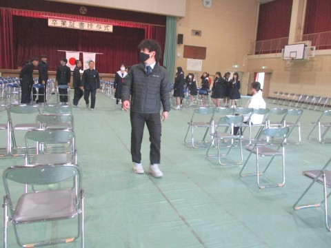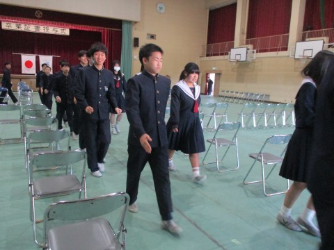 12日(木)、3年生は、明日にせまった卒業式の予行を行いました。