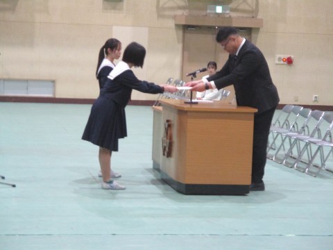 式では、各クラスの代表生徒に証書が授与されます。