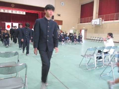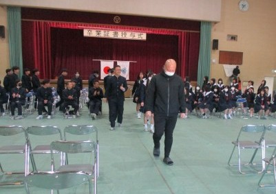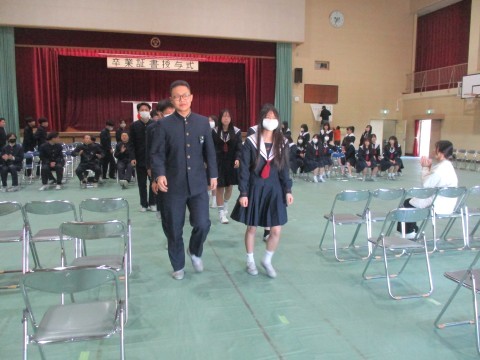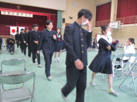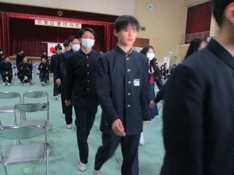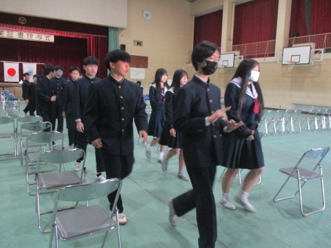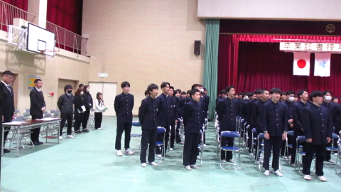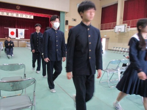 代表生徒以外の卒業証書は、式後の体育館内にて担任の先生より配付されます。