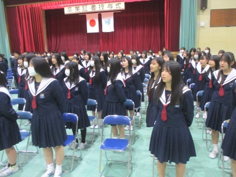 呼名後、卒業生は、学級の代表生徒に証書が授与されるまで起立をします。