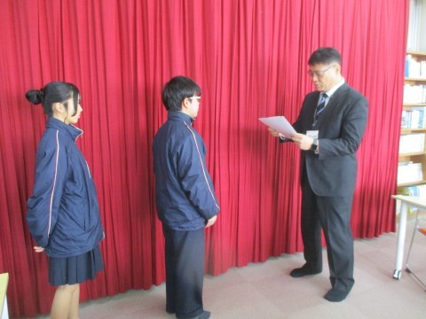 24日(火)、修了式前に伝達表彰が行われました。