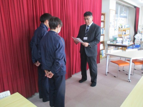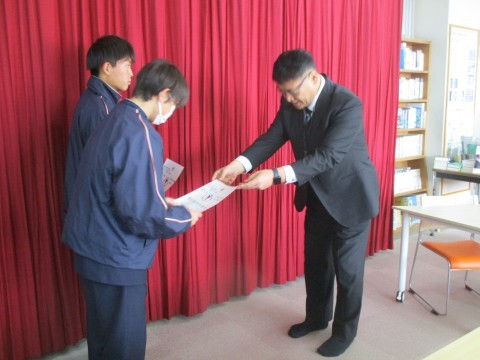 3月の大会で優秀な成績を収めることができた部員に賞状が授与されました。
