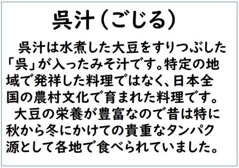 11日(火)、給食の献立は、ごはん・呉汁(ごじる)・鶏肉(とりにく)のレモンソース・小松菜と豚肉の