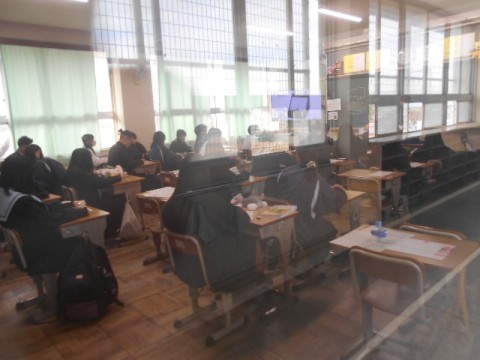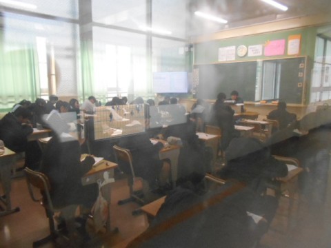 本日、1年生はチャレンジテストに取り組んでいます。教科は3教科(国・数・英)です。