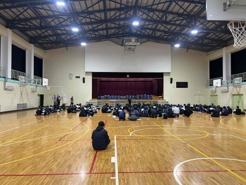 本日の4時間目に3年生は明日に控えている公立一般入学者選抜の前日指導を体育館で行いました。