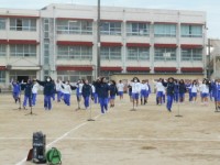 後半は男子がグラウンドで集団演技の練習をしました。