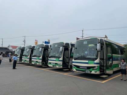 これから、バスで吉野川のラフティングに向かいます。
