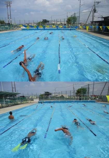 水泳部と美術部の活動の練習です。美術部は部展に向け、作品を仕上げています。水泳部は大会に向けがんばって練習しています。