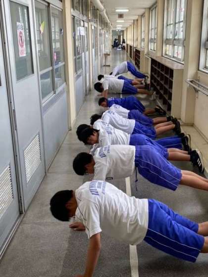 5月1日、野球部は、天候が悪かったため、校舎でトレーニング、校舎でランニング、ルーム2000でルールの勉強を行いました。