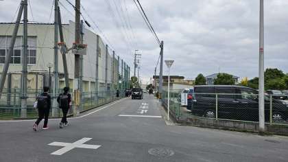 朝の登校時の様子・・・お互いの気遣いで、何とか事故なく過ごせているように思います。中学校でも、引き続き交通安全指導に努めます。保護者の皆様・地域の皆様も、ご協力をお願いいたします。