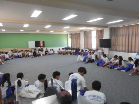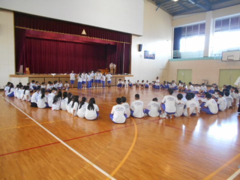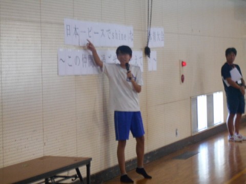 1年生から3年生まで顔合わせと、団長からの話などを行い、これから体育大会に向けて団結力を高めるための時間を作りました。
