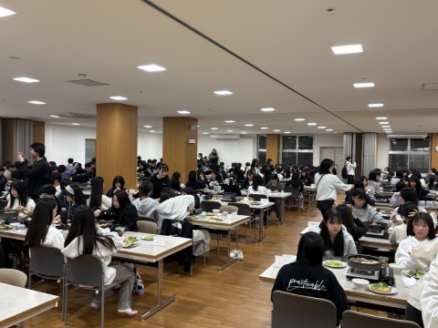 予定より大幅に遅れて、食堂に移動してきました。準備しだい、いただきます。