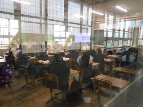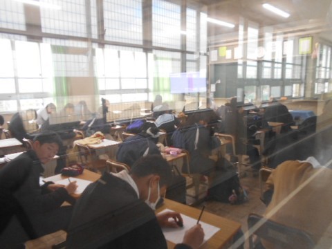 2年生も寒いので、扉は締め切った状態がほとんどでしたので、外からの写真となりました。同じくとても落ち着いていて、取り組みがとても素晴らしいです。次の3年生に向けていいスタートができています。このまま続けていきましょう。