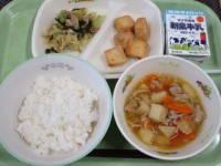明日4月25日(金)はごはん・和風ハンバーグ・高野豆腐のふくめ煮・揚げきんぴら・キャベツとわかめの煮びたしです。