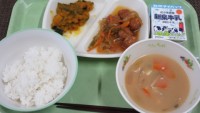 明日10月16日(木)は、ごはん・牛乳・肉団子の甘酢あんかけ・かぼちゃのうま煮・みそ汁です。