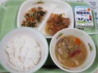 明日10月16日(木)は、ごはん・牛乳・肉団子の甘酢あんかけ・かぼちゃのうま煮・みそ汁です。