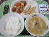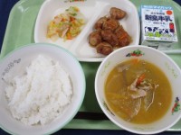 明日12月9日(火)は、ごはん・牛乳・チキンカツ・千切りイリチー・野菜たっぷりみそ汁です。