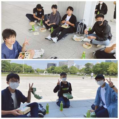 昼食の時間です。昼食後はバスで宮島に向かいます。