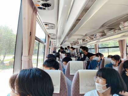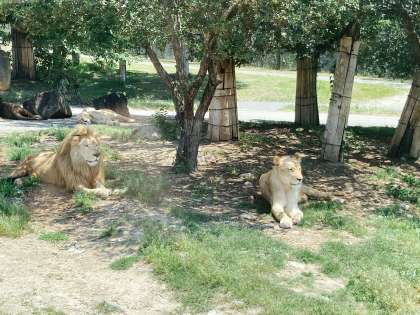 バス内でのドライブスルーサファリです。猛獣ゾーンからスタート、トラやライオンの迫力にバス内では歓声が上がっています。