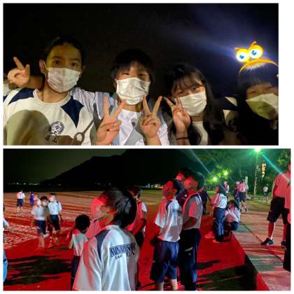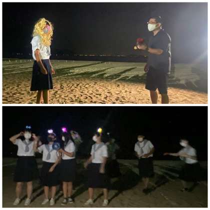 学年集会をするということで砂浜に集まり、サプライズの花火大会がありました。