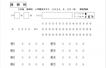 マークシートの解答用紙です。ICTを活用し、採点を自動化しています。
