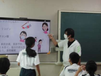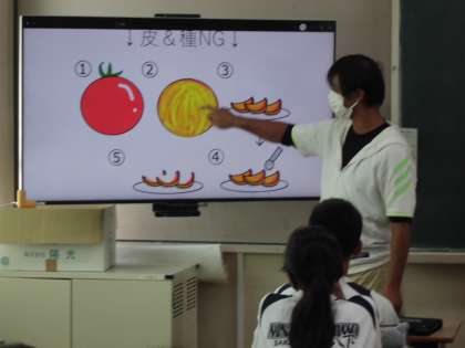 厳しい指導の一方で、3枚めの写真ではインターネット上から借用したイラストを、自分で加工する努力(トマトの写真に黄色や白色を塗っています)には温かい言葉がありました。