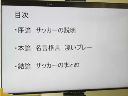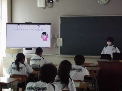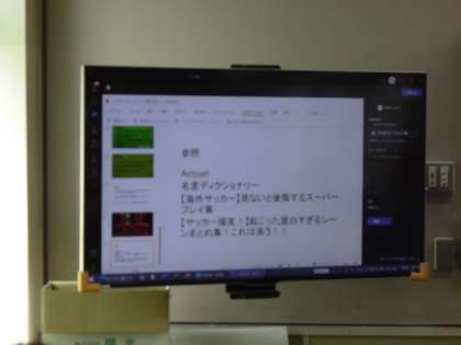 1時間め、1年2組では国語のプレゼンテーションが行われています。このクラスにとっては、プレゼンテーションの2回目の授業ですので、生徒たちは前時の先生の指導・助言を受けて、より良い構成を考えています。