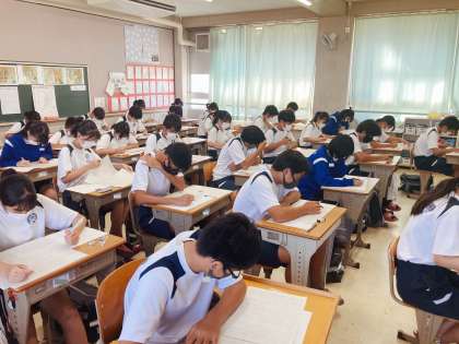 3年生は実力テストです。今回のテスト結果が今後の進路選択のめやすとなると同時に、苦手教科や単元の克服につながることを期待しています。次回の実力テストは11月7日(月)実施予定です。