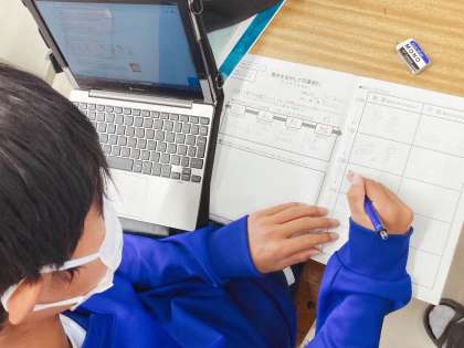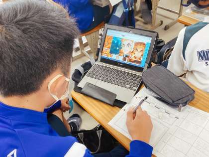 GIGA端末を活用して,アニメーションの設定画,絵コンテを作成しています。