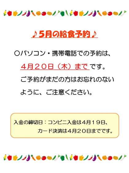 本日の給食 公開日 2023/04/14 更新日 2023/04/11 給食・食育 本日4月14日(金)はごはん・キーマカレー・チーズフライ・いそのサラダ・じゃがいも洋風きんぴらです。 [栄養価](標準の場合) エネルギ790kcal・たんぱく質28.5g・脂質25.4g [アレルギー] 卵・乳・小麦・大豆・ごま・鶏肉・豚肉・油 4月給食献立表←クリックしてください 5月給食献立表←クリックしてください