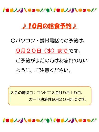 本日の給食 公開日 2023/09/13 更新日 2023/09/09 給食・食育 本日9月13日(水)はごはん・コロッケ・鶏肉と玉ねぎの卵とじ・小松菜とキャベツの炒め煮・ピリ辛こんにゃくです。 [栄養価](標準の場合) エネルギー825kcal・たんぱく質29.6g・脂質25.8g [アレルギー] 卵・小麦・大豆・さば・鶏肉・豚肉・油 9月給食献立表←クリックしてください 10月給食献立表←クリックしてください