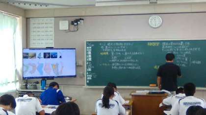 3年生の理科の授業では、生物の進化について学習しています。「このように進化した」と学習するのではなく、「そのように進化したとなぜいえるのか」とめあてを立てて学習しています。ノートからはマトリクスで情報を整理している様子が見とれます。探究する態度が涵養されています。